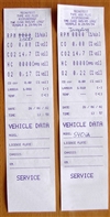 Bild 2 (Tecnotest) visar avgasvärden vid 2500 rpm (den vänstra lappen i bild) och vid tomgång (den högra lappen).