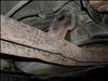 Dags att hissa upp bilen för undervändig kontroll. Det första du kan leta efter är rostangrepp och oljeläckor. I mitt fall hittades exempelvis lite olja vid bakaxelklumpen (Bild 11), förmodligen beroende på dåligt tätad påfyllningsplugg. Ingen allvarlig läcka, men det ser ju trist ut. Rost hittades tråkigt nog, men inte helt oväntat, lite här och var (Bild 12-15), dock inte på några bärande/vitala delar. Det kan vara en god idé att lägga upp ett åtgärdsprogram för rostlagning.