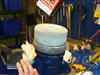 Några dagar innan bör man lägga i stenskott, med lackstift eller bättringsfärg. BMW lackbättringsprodukter (bild 2) håller hög kvalitet och färgen stämmer mycket bra i kulören. När eventuell lackbättring utförts och härdat några dagar är det sedan dags att ge sig på poleringen. Man behöver en oscillerande polermaskin med kardborrefäste för skumgummirondeller (bild 3), i detta fall en Waxmaster som modifierats med på limmad kardborreduk samt att rondellen skurits ned till 150 mm diameter. Casco superset lim har använts (bild 4) då det är flexibelt, kardborreduken kan eventuellt behöva kompletteringslimmas någon gång per år.