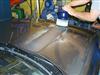 Denna bil behöver poleras med cleaner först, så det blir dubbelt med tid och arbete. Cleanern är lite vassare än polishen och avlägsnar oxider på ett bättre och effektivare sätt. Jag provpolerar huven på kvällen för att ge inspiration inför morgondagens slit (bild 7). 1/3 av motorhuven nästan fram till högra spolarmunstycket har polerats och här ser man en klar skillnad vilket ger mersmak.