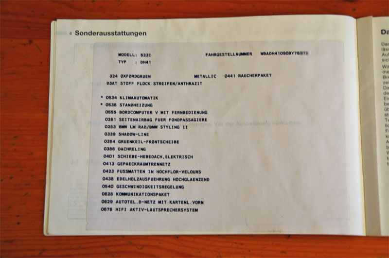 Vissa återförsäljare klistrade in en utrustningsspecifikation i serviceboken