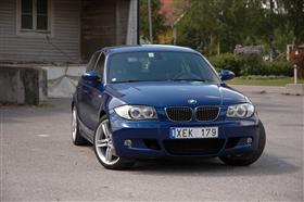 Utseendet på 1-serien har vi redan berört i vårt test av 116i, där vår provbil liksom den här bilen var utrustad med sportpaketet. Det räcker egentligen med att konstatera att 18" M Dubbelekerfälgarna passar bilen som handsken, liksom den mycket snygga Le Mans-blåa lackeringen. BMW är lite av specialister på snygga blå lackeringar, och bland alla Mauritziusblåa, Estorilblåa, Avusblåa, Montrealblåa, Laguna Seca-blåa och Orientblåa BMW-bilar så är Le Mans-blå absolut på topp 3-listan.