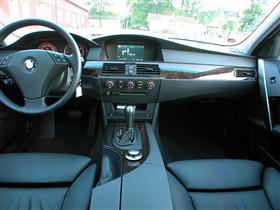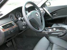 Invändigt känns instrumentbrädan igen från 7-serien, med vissa förändringar. Däremot finns absolut ingenting kvar från E39, och då menar jag ingenting! Allt är helt nytt, eller ärvt från antingen 7-serien eller Z4. Möjligtvis har växelspaken drag av E39, men annars är allt omarbetat. För de som är vana vid den förarorienterade inredningen i gamla 5-serien känns 530dA stor och luftig, mycket beroende på bredden och att den tidigare tydligt definierade mittkonsollen är förminskad. Det finns hur många läckra detaljer som helst, men för att nämna något så är de utanpåliggande mätarna mycket snygga, liksom telefoninstallationen.