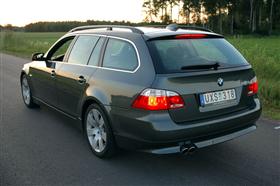 BMW:s kombimodeller har alltid varit mycket populära i kombilandet Sverige. Såväl E34, E39 som E46 kombi har alla varit mycket lyckade modeller som också sålt bra i Sverige. Nu äntligen är E61 här, och AutoPower har provat topp-modellen, 545iA Touring! Nu står den äntligen på garageuppfarten, även om "vår" 545:a är en pressbil från BMW Sverige. Bilen väcker också berättigad uppmärksamhet. Den är fortfarande ingen vanlig syn på svenska vägar, trots premiärvisning för tre månader sedan. 545:an är i mitt tycke snyggare än sedanen. BMW har alltid tillverkat snygga kombibilar, med smäckra och sportiga linjer.