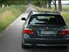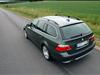 Jag måste erkänna att själv föll jag pladask för provbilens utseende. Med de ursnygga 18"-arna ser bilen oerhört dynamisk ut. Eftersom jag inte gillar breda fälgkanter passar stjärnekerfälgarna min smak perfekt! Utvändigt är provbilen Titangrå II, vilket är en mycket snygg och sober färg. I mitt tycke är både E60 och E61 snyggare i mörka färger. En obegriplig detalj som BMW envisats med sedan faceliften på E39 är att lacka lastkanten till bakluckan, vilket är för fåfängt på en kombi. Lastkanten kommer ofelbart att bli repig och ful, vilket är helt omöjligt att undvika ens vid normal användning.