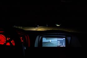 Ett annat spännande tillval är "Night Vision". Ni har väl sett reklamen? Tvättbjörnen som petar näsan. Night Vision fungerar mycket bra. Lite tillvänjning krävs eftersom bilden visas på den vanliga skärmen i centrum på mittkonsolen. Men det är inte konstigare än att kika i backspegeln. Efter en stund har man vant sig och slänger ett öga då och då på skärmen. Man tappar förvisso navigationskartan, men man de viktiga körinstruktionerna levereras i varvräknaren på ett tydligt sätt (eller till höger på skärmen om man så önskar).