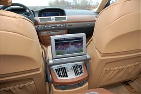 I baksätet är det inte mycket sämre: fullt eljusterbara stolar. Till och med nackstöden kan justeras elektriskt bak! En kul detalj är att jag på höger sida bak kan justera stolen framför mig för att exempelvis få större benutrymme! Av säkerhetsskäl finns denna funktion inte på vänster sida. I baksätet finns också en separat skärm där baksätespassagerarna kan njuta av DVD-film från DVD-växlaren i bagaget. När man avverkat de sex filmerna kan man byta signalkälla och kika på TV - digital sådan naturligtvis. Mottagningen är mycket god så länge man inte befinner sig i direkt radioskugga. Klart är att digital-tv betyder mycket för upplevelsen i bilen - inte längre något brus eller skuggbild.