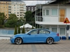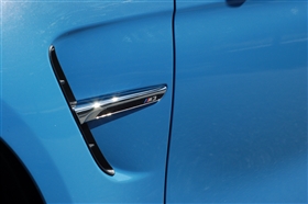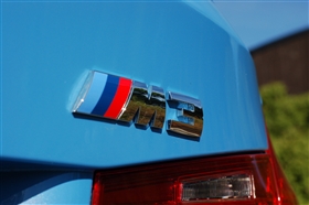 Utvändigt är det en hel del skillnader mot en vanlig 3-serie. I stort sett varje karossdetalj är annorlunda, men M3 känns inte överdesignad utan rakt igenom smakfullt formgiven. Färgen är Yas Marina blå metallic och är inget för den blyge. Det är den senaste i raden av M-färger som får namn efter kända racerbanor och denna gång är färgen namngiven efter Formula 1-banan i Abu Dhabi. Man kan väl säga att trenden startades med M3 E36 och Estorilblå metallic.