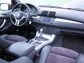 Leif öppnar bilen med fjärrkontrollen och börjar förklara bilens funktioner mer ingående. Jag känner vid första anblick igen mig då min 540iA touring är liknande uppbyggd vad gäller instrument och reglage. Noterar de kromade ringarna som inramar de enskilda instrumenten á BMW M. Efter en minut så sitter jag själv bakom ratten och börjar justera förarstol och ratt i rätt läge med elreglagen.