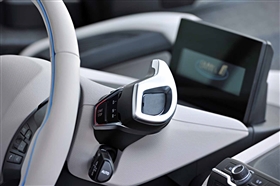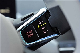 På höger sida av rattstången sitter helt ny spak - nämligen ett reglage för att välja om bilen ska gå framåt eller bakåt, men det är ingen växelspak, eftersom det inte finns några växlar. Det finns lägen för framåt, neutral, bakåt och en knapp för parkering.