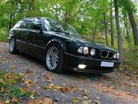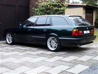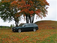 1993 presenterade BMW sin kombiversion av den dåvarande M5:an som ingår i modellserien E34 och M5:an som jag har provkört är av årsmodell 1995. Dessa bilar levererades med en 3.8 liters rak sexa på 340 hk och med en alldeles förträfflig 6-växlad låda. Dessutom hade -95:orna Nürburgring-paketet som standardutrustning. I detta paket ingår progressivare servostyrning, grövre krängningshämmare, 9 tum breda fälgar bak, EDC (elektroniskt justerbara stötdämpare), bromsskivor på 345 mm fram och 328 mm bak, fyrkolvsbromsok och 18-tumsfälgar som standard. Det första intrycket jag får av den svensksålda M5:an är att den känns nästan helt ny. När jag slår på tändningen så märker jag att bilen bara rullat drygt 8.000 mil och detta känns skönt eftersom dessa M5:or är riktigt ovanliga. Man känner verkligen att bilen är och har varit pedantskött - alla reglage känns gedigna och ingenting känns slitet på något sätt.