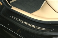 B7:an är som konstaterat en helt brutal skapelse, på gränsen till vulgär med Alpina-mått, med sina gigantiska 21"-fälgar och överlag tämligen indiskreta framtoning (E65 är förvisso knappast diskret oavsett utförande...). E60 B5 i sedanutförande har jag tidigare bara sett på bild, och inte riktigt låtit mig övertygas. För inte allt för länge sedan såg jag bilder på en safirsvart B5, men med svart skinn och helt utan de typiska Alpina-stripesen. Då tyckte jag att den var FÖR diskret och hade inga direkta förhoppningar om att tappa hakan vid första anblicken av Anders nyförvärv, även den safirsvart. Därför var det en odelat positiv upplevelse att kliva in i Bilförsäljningens nybyggda anläggning i Helsingborg och se den nypolerade B5:an skina ikapp med solen utanför. Stripesen gör i mitt tycke enorm skillnad för att framhäva bilen, och får den verkligen att kännas speciell. Bilen upplevs som betydligt biffigare när man ser den på plats. Bakfälgarnas feta kant, de grova utblåsen och den aggresiva frontspoilern är några av de detaljer som omöjligen kan framhävas på samma sätt med hjälp av ett foto. Slående är också bilens fantastiska skick. Anders berättar att han köpte bilen direkt från första ägaren i Tyskland, som uppenbarligen varit noga med skötsel och bilvård. Sina 3300 mil till trots är bilen i nyskick såväl in- som utvändigt sånär som på någon enstaka mindre lackblessyr.