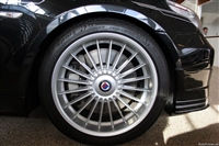 Lite om modellen... B5 är inte riktigt lika udda som B7 (av vilken det mig veterligen fortfarande bara finns en i hela landet), men ändå väldigt ovanlig - uppskattningsvis finns det på sin höjd fem stycken i Sverige. Motorn är samma 4,4 liters Valvetronic-V8 som i B7, och har följaktligen sitt ursprung i BMW 545i/745i. I Alpinas verkstad får motorn bland annat nya kolvar, och man monterar en radialkompressor med tilllhörande laddluftkylare innan den skickas tillbaks till BMW. Totalt ökar effekten från 333 till 500 hästkrafter - en siffra som sannolikt faktiskt är lägre än vad motorn egentligen presterar. Chassit och styrningen finslipas av Alpina, och målet är att bilen ska vara så neutral som möjligt att köra i alla situationer. Bromsarna är samma som på B7, det vill säga samma som på E65 760i - vilket för B5 räcker till att uppnå likvärdiga och i vissa fall bättre bromsvärden än M5! Att döma av de tester jag sett och läst så har kritiken på B5 inskränkt sig till att bilen saknar diffbroms, vilket gör att det "inre" bakhjulet bokstavligen går upp i rök vid provocerad kurvtagning med gaspådrag, och vilket också gör bilen lite mer oberäknelig när man fått sladd. Alpina har tagit fasta på kritiken, och numera kan bilen beställas med diffbroms - förvisso till det inhumana priset av 3000 euro, men det får ändå ses som en grundläggande och god investering.