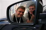 X6 rullades sedermera av scenen för att lämna plats för en ilsket rödmetallic 123d Coupé, och till vår gemensamma glädje ser bilen (ännu) bättre ut i verkligheten än på bild. Kopplingarna mellan 1-serie coupé och den legendariska 02-serien är tydliga, och för att ytterliggare påskina det avlägsna släktskapet modellerna emellan visar BMW filmer på 02:or i bakgrunden under tiden bilen rullar upp på scenen. Som en extra liten vink till 2002 Turbo och dess kritiserade dekoration, har man klistrat en streamer i framrutan med texten BMW Efficient Dynamics - spegelvänt - i vindrutan! Chris Bangle berättar att det rådde lite ”02-feber” (detta beskriver han på amerikanska som ”2k2-frenzy”) på designavdelningen när 1-serie coupé ritades och bekräftade att man velat återskapa ikonens själ och känsla, utan att för den sakens skull skapa en retro-design, vilket jag definitivt tycker att man lyckats med. Inuti bilen känner man igen sig från halvkombin och förarmiljön känns följaktligen mycket välbyggd och välplanerad. Baksätet är fullt tillräckligt för mina 177 centimeter, även om huvudutrymmet förutsätter att man är relativt nyklippt...