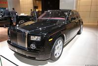 På mässan visas Phantom med kort hjulbas i svartmetallic med en djupt vinröd interiör och handmålade(!) dekorstripes längs karossidorna. Rolls-Royce kan beställas i 44 000 (!!) olika ”standardfärger” men det går att få bilen i princip i vilken nyans man vill, så länge man är beredd att betala för det. En kvinnlig köpare beställde exempelvis sin Phantom i exakt samma kulör som sitt favorit-nagellack… Kort hjulbas innebär att bilen ”endast” är 5,85 meter lång- det vill säga nästan en meter längre än en E38! Det går inte riktigt att förstå hur stor en Phantom är förrän man sett den i verkligheten. Den vinröda klädseln är tydligen jeans-kompatibel och jag tillåts att kliva upp i baksätet. Insteget påminner snarast om en SUV – Phantom är stor i alla riktningar. Fötterna sjunker ned i en fem centimeter tjock golvmatta och jag lutar mig tillbaks. Phantom kan beställas antingen med helsoffa, som i detta exemplar, eller med två separata fåtöljer i baksätet. Man sitter verkligen som en kung, och detaljarbetet saknar helt motstycke inom bilvärlden. Som genom magi trollas en 8”-LCD-skärm fram ur stolsryggen, för den som är sugen på underhållning. En Rolls Royce skall kunna ha den senaste teknologin, men presenterad på ett subtilt och inte påträngande vis. Från förarplats är alla funktioner enkelt överskådliga. Ur en ”byrålåda” i mittkonsolen trollar man fram iDrive-reglaget och kan således få tillgång till litet djupare inställningsmöjligheter. Växelväljaren har tre lägen: Drive, Park och Reverse. Steptronic? Sportläge? Launch Control? No way! Ratten har diameter som en familjepizza men med en kringla smal som en grisini och inbjuder knappast till inspirerande körning, vilket känns helt rätt. En fet sportratt med växelpaddlar hade saboterat hela interiörens ambience.