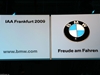 BMW bryter de senaste årens tradition att hålla till i Agora-hallen, och har 2009 hyrt den helt nybyggda hall 11 på det enorma mässområdet. Det är även första gången BMW Group har sina montrar under samlat tak vilket alltså innebär att BMW, Mini och Rolls Royce är grannar. Störst plats tar utan tvekan BMW, som byggt upp ett imponerande upplevelsecentrum under parollen "Freude definiert die Zukunft" - Glädje definierar framtiden. Mest iögonfallande är den körbana som byggts upp runt i princip hela montern och på vilken allehanda bilar av varierande utförande skall köras runt. Montern går stilrent i vitt och blått, med gigantiska skärmar monterade på strategiska platser, och med M-avdelningen i ett eget, lite dunklare hörn.