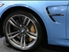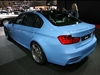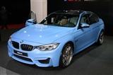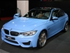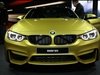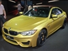 M3 är numera sexcylindrig igen, efter att ha stoltserat med V8 i förra modellen E90. Bilen i montern var lackerad i en något odiskret färg som närmast kan beskrivas som babyblå, men som enligt BMW kallas för Yas Blau metallic. M4 såg ut att vara lackad i den gamla E46-färgen Phoenix-gul, men denna var döpt efter en annan sydligt belägen amerikansk stad och kallades Austin Gelb metallic.
