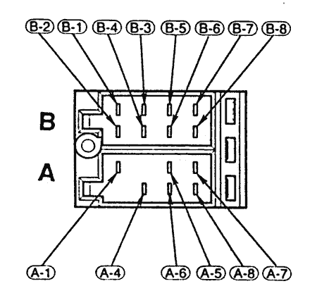 ISO-kontakt standard Länk A-1 Telefondämpning* A-4 +12 V permanent A-5 Motorantenn/Fjärrpåslag förstärkare A-6 Belysning* A-7 +12 V via tändning A-8 Jord B-1 Höger bak + B-2 Höger bak - B-3 Höger fram + B-4 Höger fram - B-5 Vänster fram+ B-6 Vänster fram - B-7 Vänster bak + B-8 Vänster bak - *) Endast vissa modeller Sådär ungefär :o) //Ulke Farten dödar ej, det är det plötsliga stoppet! |