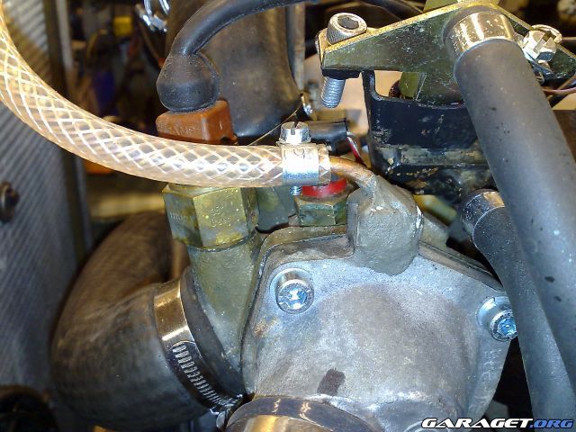 Det eviga problemet på vissa BMW, luft i kylsystemet, och när man väl ska lufta är det problem med luftningsnippeln som nån dragit rund eller liknade. Vi löste problemet med en bit bromsrör i koppar, kemisk metall, ett T kors och en bit slang. Ta ur nippeln och gör hålet så rent som möjligt. Gör en kona i båda ändar på röret och böj det, dra en ståltråd genom röret. Fyll hålet med kemisk metall, tryck ner röret och kladda kemisk metall runt det, håll det fixerat tills det härdat, ca 5 till 10 min. Dra lite i ståltråden innan det hädat helt, tråden har man där för att annars blir hålet i röret igensatt när man stoppar ner det, sen drar man ur tråden, prova innan så den går att dra genom röret. Klipp av tunna slangen som går mellan kylaren och expantionskärlet och sätt dit T korset, dra slangen mellan röret o T korset, Klart !! Fyll i vatten och kör, luftningen fixar sig själv. Länk | |