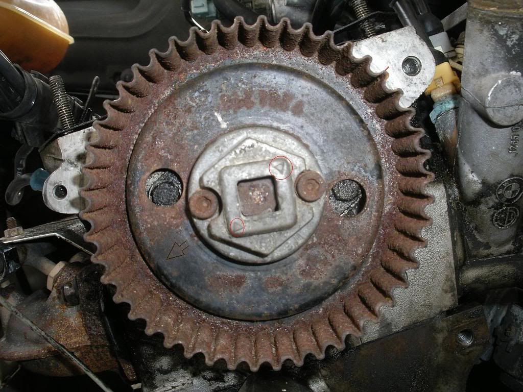 Tja, håller på och byter kamrem på min 520i E28 1984. Motorn är en m20b20 med fördellaren på blocket under insuget. Nu till problemet. var sitter märkningen på kamhjulet? Hittar märkningen på vevaxeln, men inte på kamhjulet. Har några pilar som är mistänkta men är inte säker. Tog en bild på eländet. [IMG]Länk Sämsta kamhjul jag sett, lada stuk. Men är hemskt taksam för hjälp, måste ha bilen i morrn så det är lite brottom :) //Mikael | |