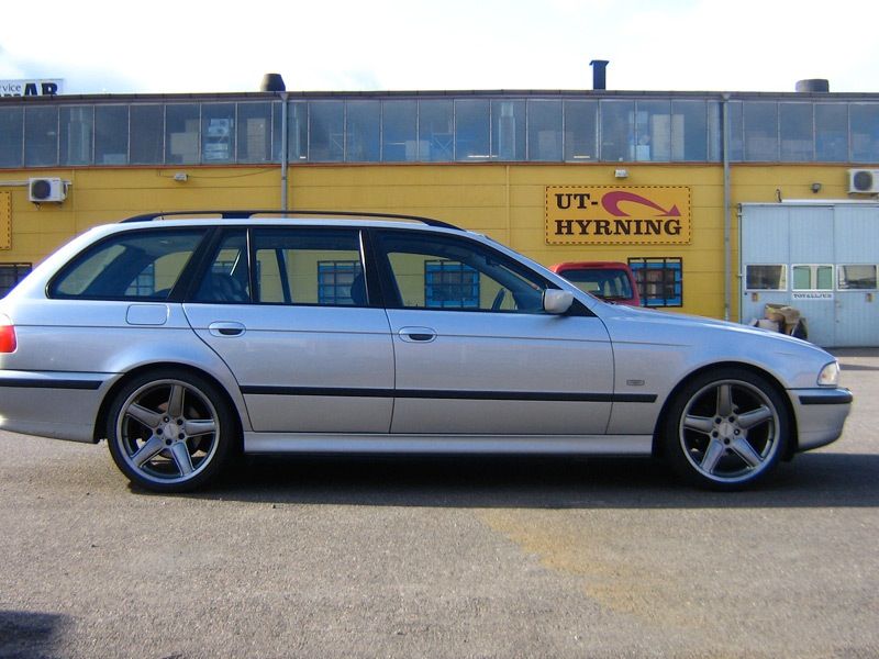 Janne: Du skriv i din blogg att GE skötte ärendet på ett bra sätt, vill du definiera "bra sätt" Jag har vid en första kontakt med GE fått ett bra bemötande där jag skickade med bilder på min bil både före och efter sänkning och både dom och jag anser ju förstås att så är ska det inte vara. Fjädrarna sänker ju verkligen inte i närheten av 50 mm. GE lovade att titta vidare på detta, jag frågade även om dom hade fjädrar från någon annan leverantör som jag kunde få i stället vilket dom tyvärr inte hade. Detta var nu ett antal veckor sen och jag har nu flertalet gånger mailat dom med frågan om hur det går med mitt ärende, dock verkar de inte ha tid med mig efter som de inte behagar att svara på mina mail. Detta tycker jag är tråkigt speciellt eftersom GE Motor lär vara införstådda att deras 50 mm sänkfjädrar fram till E39 är rena rama lurendrejeri-produkten. Peter: Eftersom det inte går att lita på hur mycket sänkfjädrar sänker så kan jag absolut inte säga vilken sänkning du ska ha. Efter mina mätningar som jag gjort verkar det dock som att 50 mm skulle kunna se riktigt bra, tyvärr fick jag inte se det. Jag har god lust att skicka tillbaks fjädrarna till GE men hittar ju heller ingen annan som säljer 50mm fjädrar som INTE är av märket supersport. Jag blir galen snart. jag har 50 mm sänkning på min bil och 19" fälgar och den ser ut som en X5:a... Jag har inte sänkt bak än eftersom jag ville se hur det blev fram först (man vill ju inte ha hängröv) Med denna setup är bilen jämn hög mellan däck och skärmkant fram och bak. __ /Chrille |