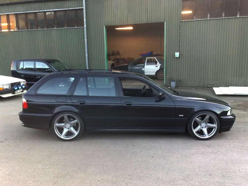 Bmw 523- sänkning från realcar 60/40.... Har 18" med 40 profil... Är precis så det går frit i fram skärmarna.... |