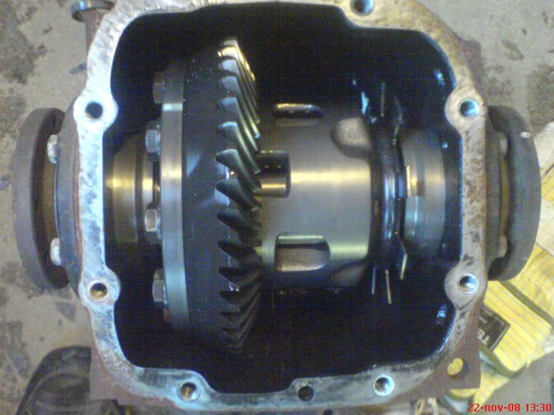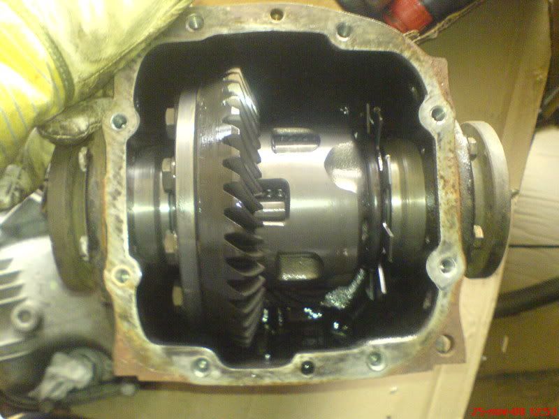 Kan sätta min högra arm på att det där är en LSD (lamelldiff). Du måste öppna diffen för att finna lamellerna, du har ju bara lyft locket till slutväxeln. |