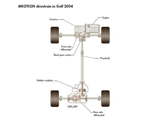 Man ska titta på helheten, inte var motorkåpan sitter. Allmänt sett brukar det jämna ut sig med växellådan och andra aggregat (batteriet) - skulle oroa mig mer för tunga förare som kan väga lika mycket eller som motorn i mindre bilar. Liten bild på hur det principiellt funkar med framhjulsdrivande tvärställd motor och växellådan: Länk Med fyrhjulsdrift blir det lite mer komplicerad, här förenklad hur kraften kommer till bakljulen (to Haldex): Länk Helheten ser då ut såhär (som på R32:an): Länk |