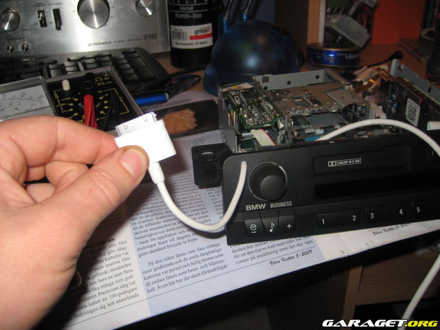 Tänkte bara dela med mig lite av vad jag pysslade med hela dagen igår :D Har en iPhone samt BMW Business med kassett (idiotiskt när bilen är från -02!!) samt cd växlare där bak. Har spanat länge efter alla olika lösningar med icelink osv men det har känts lite dyrt ändå.. när man skulle kunna grejja det hyffsat enkelt själv med vad man har. Så jag skaffade mig en TV-ut kabel från tradera för hundra spänn. Denna kabel har bild+ljud samt usbkabel för laddning. Sedan slog jag sönder billaddaren och plockade ut kretskortet och skred till verket. På baksidan av min stereo hittade jag två små 10-poliga kontakter där ljudet från cd-växlaren gick in på den vänstra. Enligt olika skisser har jag sett att man ska kunna aktivera AUX genom att koppla in på den högra och sedan sätta ett motstånd på ca 300kOhm över R+ och L+ samt två kondensatorer på ca 1uF i serie med vardera R+ och L+. Provade detta på alla möjliga sett men det funkade aldrig. Kanske har min stereo inte den funktionen? (Stereon skrev DISABLED i displayen när jag startade upp.. om det har med det att göra?) Så istället bestämde jag mig för att koppla in iPhonen på den vänstra ingången och strunta i cd-växlaren. Detta kopplade jag in på insidan av stereon där jag också tog - och + 12v från pinnarna 15 (-) och 5 (+ när man startade bilen). Denna spänning drog jag sedan till laddaren som gjorde om det till 5v 100mA som sedan gick in i iPhone kabeln. Borrade ett litet hål för kablen på framsidan och sedan var det klart! :D Enda lilla "bekymret" är ju att för att aktivera cd mode på stereon så måste en skiva finnas i cdväxlaren och snurra.. fast ljudet då kommer från iPhonen istället. Men det får duga såhär! Kanske någon vet hur man aktiverar AUX på min gamla stereo så jag kan koppla in det där istället och ha kvar cdväxlar funktionen?? Här kommer lite bilder från projektet: 1. Lossa lite lister: Länk 2. Skruva ut stereon: Länk 3. 10-poliga kontakterna på baksidan: Länk (Där en usb kontakt för pc moderkort passar perfekt!) 4. Modifiera usb kontakten lite: Länk 5. Arbetssoffan hehe: Länk 6. Skippade usbkabeln och tog det från insidan istället: Länk 7. Nytt litet hål: Länk 8. In med sladden: Länk 9. Löda dit laddaren: Länk 10. Ner med allt inuti stereon: Länk 11. Klart!: Länk Och så en liten film: Länk Men som sagt.. Vet någon om man kan aktivera AUX ingången på en BMW Business Kassett stereo från -02 med cd-växlare? Vore ju ändå en snyggare lösning så man slapp ha en skiva igång. | |