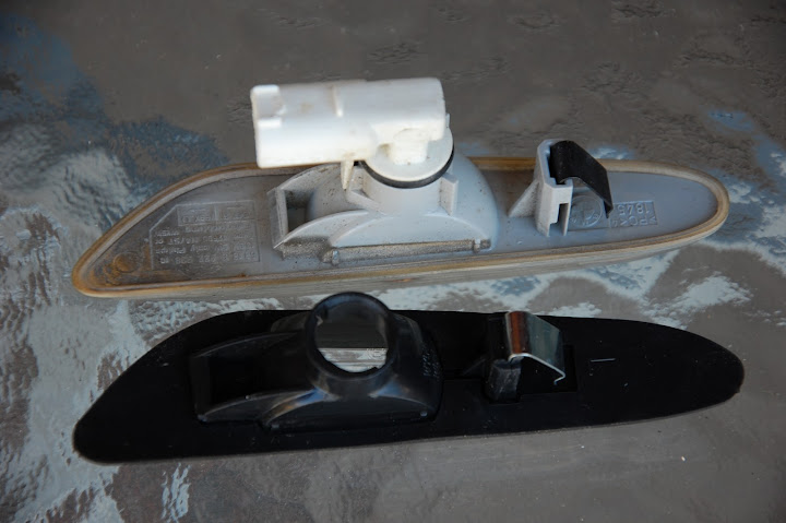 På bilden ser det ut som om den svarta blinkersen helt saknar gummipackning. Gummipackningen bygger nog på ett visst antal mm. Den kanske skall flyttas över från orig till pirat? (bara en vild gissning;-) |