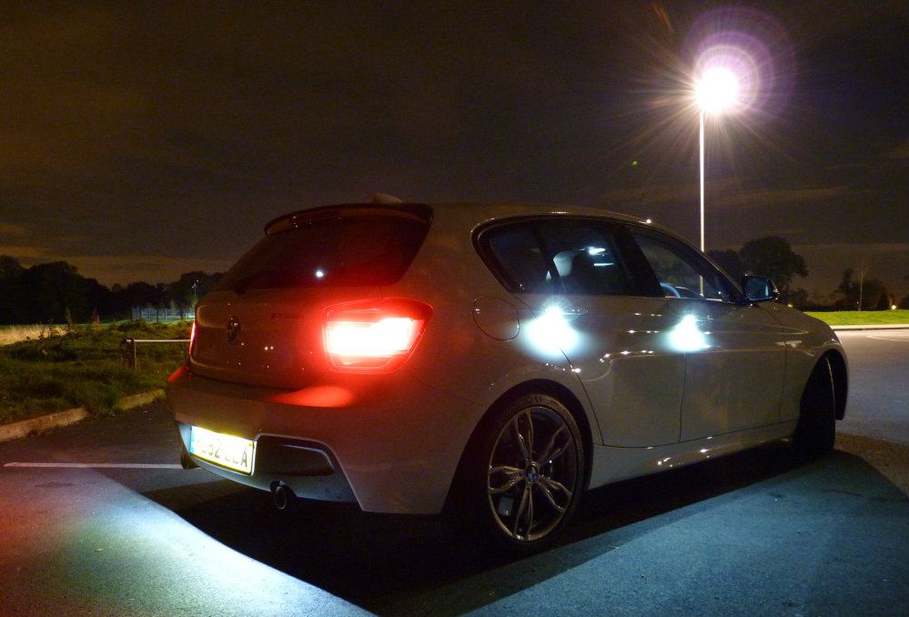 Här kommer en bild med BMW M 135i i mörker med belysningspaket. Länk |