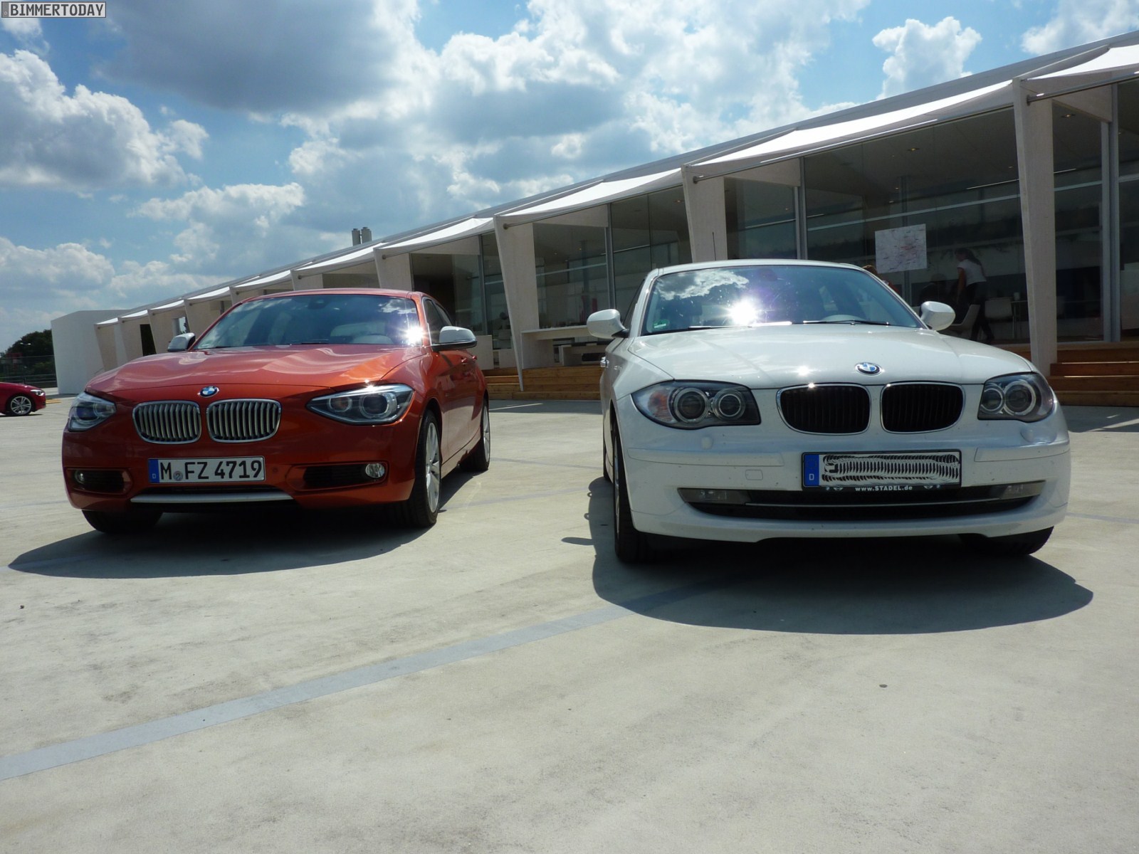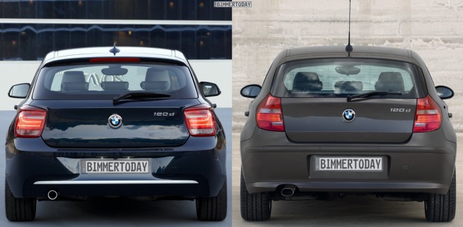 Det är knappt att man ser skillnad. Förutom att F20 är nytvättade och blankare. Ställer man en välpolerad röd E87 bredvid en solkig F20 så vete fan. |