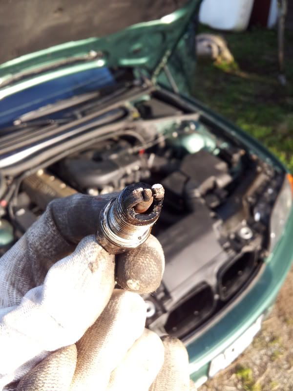| Förtydligande: Stiften ser ut att passa din motor bra, jämn brun beläggning på isolatorn. Den kraftigare vita beläggningen borde inte vara där alls, men det kan ju vara som så att LMM är orsaken. Rätt fantastiskt att stiften inte såg värre ut, de kunde lika gärna ha varit kolsvarta... | |