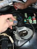 Angående laddningslampan så fungerar det på följande sätt. Med tändningen påslagen men inte motorn igång (dvs generatorn genererar ingen spänning) så får laddningslampan spänning från batteriet och går sedan via den blåa kabeln ned till generatorns laddningsregulator (D+ terminalen). Eftersom motorn inte är igång går den direkt till jord och du har en sluten krets och lampan lyser således. När du startar motorn och generatorn laddar kommer laddningsregulatorn inte längre att agera jordpunkt (det kommer att vara en regulerad spänning) och lampan lyser inte längre (då den har spänning på båda sidor och du får inte någon sluten krets). Eftersom lampan lyser så har du uppenbarligen en fullt fungerande sluten krets. Frågan är bara om du kopplade in den rätt, dvs om du verkligen kopplade in den blåa kabeln på D+ terminalen. Om du kopplade in den blåa kabeln på någon av del av generatorn så blev den garanterat jordad vilket förklarar varför laddningslampan lyser hela tiden. Så antingen kopplade du in den blåa kabeln fel eller så är din laddningsregulator trasig. Dra igång motorn och mät spänningen över batteriet, bör vara mellan 13.2 och 14.5 volt. Ligger du däremellan så kopplade du med största sannolikhet in den blåa kabeln på fel ställe. Den blåa kabeln går dessutom upp till pinne 12 i diagnosuttaget. Jag provade för skojs skull att mäta på pinne 12 och mätte upp 14.46 volt vilket var väntat. Länk |