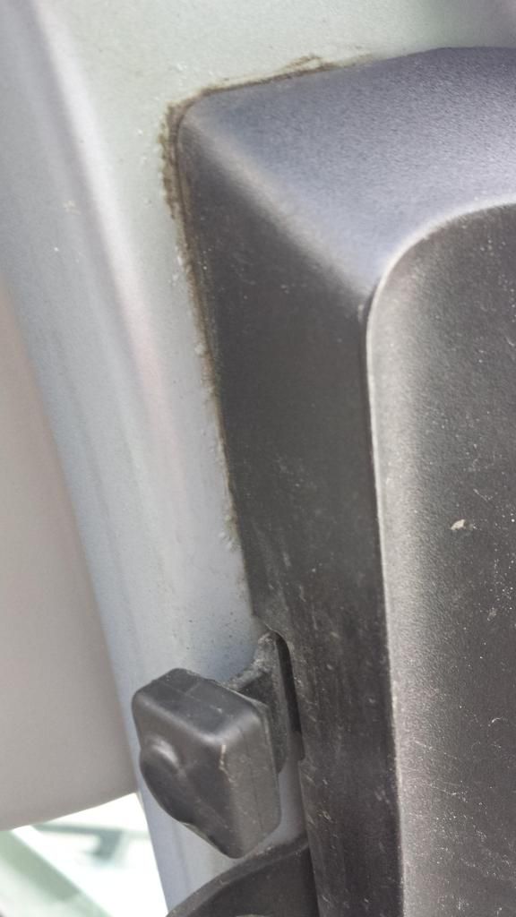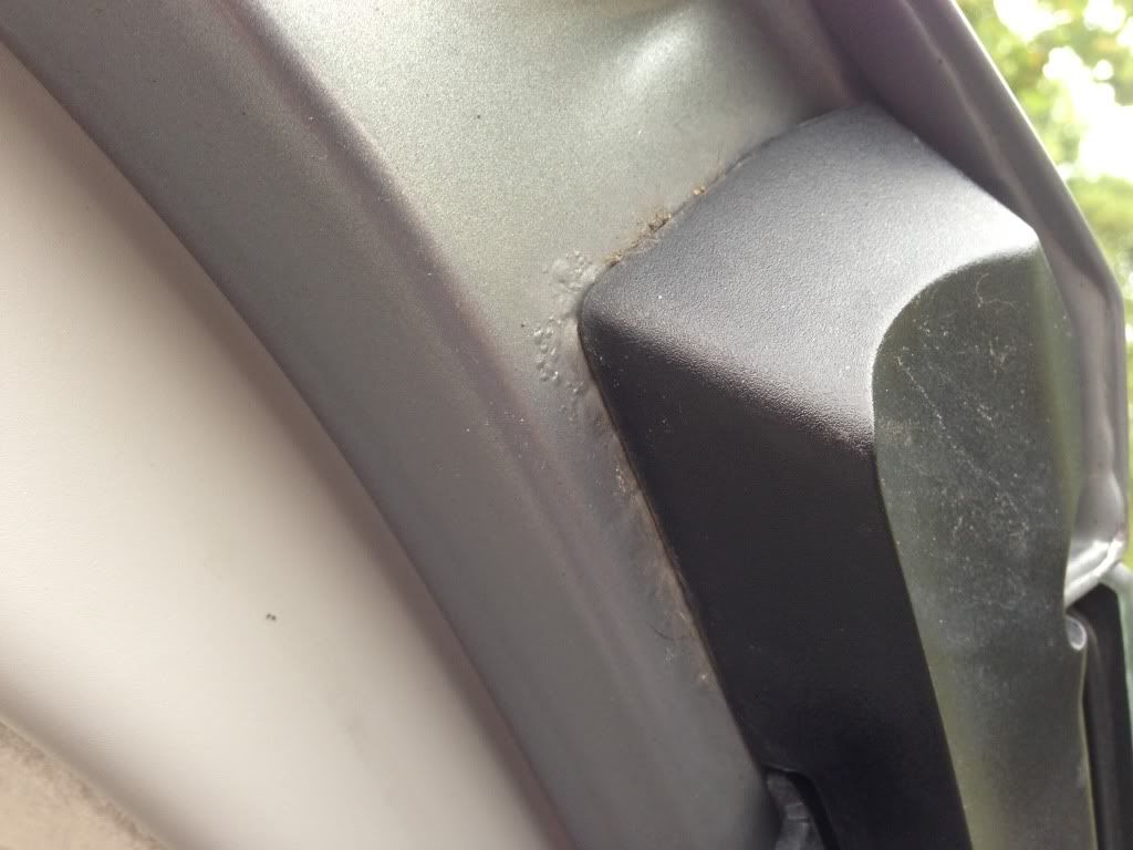 På sidorna där gasdämparna är infästa på luckan sitter plastkåpor, kikar du runt kanten där den ligger an mot lacken så hittar du rost, om du har rost givetvis.
