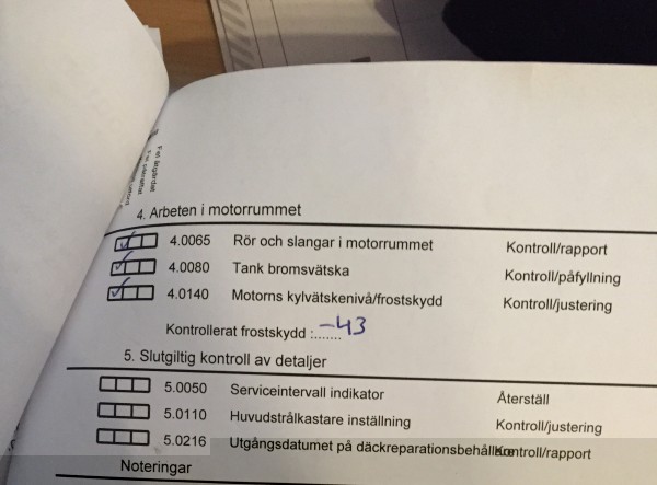 Crille: Protokollet från Mekonomen hade samma form av kontrollpunkter som VAG så det var samma form av (väldigt ytliga) inspektion. Modell "kontrollera spolarvätskenivå[]" osv. En inspektion jag inte ger någonting för och inte är nämnvärt sugen att betala överpris för. ------- //Lövet |