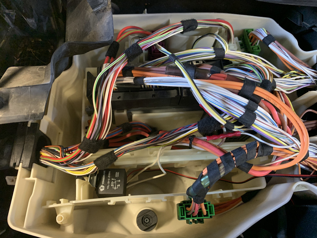 Kör man lugnt och det är fint väder tycker motorstyrningen att motorn ska vara 80°. Tröttnade på det, så satte ett relä över värmeelementet i termostaten. Liknande som jag gjorde i 325an, fast då kopplade på kablarna vid termostaten. Här gick jag på utgången på DME i motorstyrningslådan, och satte relät där. Länk Länk Relät kopplat NC (normalt händer inget, när relät drar bryts matningen till elementet). Gjorde en hållkrets med två små relän. Länk Satte en tryckknapp lite dålt, för på-av. Länk (Den andra är för en annan funktion.) En liten röd lysdiod som indikerar att relät är draget. Länk Länk Styrningen kopplad så att den nollas när bilen somnar. --- Det är bara döda fiskar som följer med strömmen. |