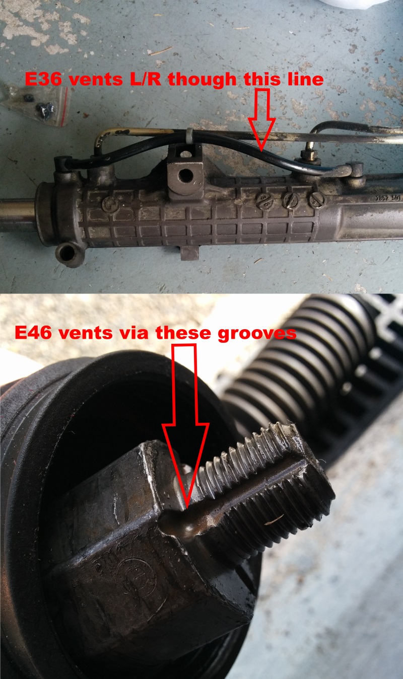 @joakim2: Blev nyfiken på den E46'ans ventilation genom kuggstången - har du mer info om det där? Kliar mig lite i huvudet om vad det är för ventilation och hur det hänger ihop med de inre styrstagen. Aha, vänta nu - är det för att "tryckutjämna" inuti gummibälgarna så att säga för att undvika att den ena sväller upp och den andra sugs ihop när man svänger fram och tillbaka? Min Z3 styrväxel har ju en gummislang på utsidan som tryckutjämnar mellan de olika delarna. Aha, så E46 tryckutjämnar internt genom kuggstången precis som du säger :-) Tror jag greppat det, men om någon kan bekräfta om jag är inne på rätt spår så uppskattas det! EDIT : Hittade denna bild och denna tillsammans med beskrivningen från joakim2 förklarar allting :-) Länk |