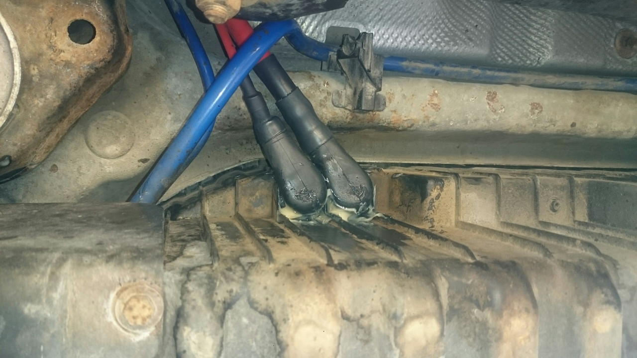 Det där är nog så bra man överhuvudtaget kan göra (förutom då att dra om kablarna helt och hållet och omplacera övergångarna - vilket är monumentalt jobb)! Men det gäller att göra det så tidigt som möjligt innan det är alltför angripet. Jag tror du gjorde det i tid för denna typ av skydd. Men om "basplattan med pinnskruven" ärgats sönder för mycket eller (det som är vanligast) att kopparärgningen (Belzebubs gröna pulver) vandrar innanför plastskyddet och uppåt i kablarna. Det är detta tillsammans med mekanisk påverkan som till slut gör att en kabel går av eller hänger bara ihop med en tunn tråd. Man kan se på den lilla kabeln att ärgningen börjat krypa uppför kabeln, men denna behandling kommer definitivt att dämpa hastigheten på detta rejält. Den stora kabeln verkar ha klarat sig bättre (men den har även en bättre variant på kabelskon som gör att kabelkärnan inte är lika utsatt som den lilla). @Sverige : Var köpte du polskydden (sådana är bra att ha i lite olika sammanhang - sist fipplade jag med en gammal startmotor där det hade varit bra att ha sådana då originalen bara smulades sönder)? |
