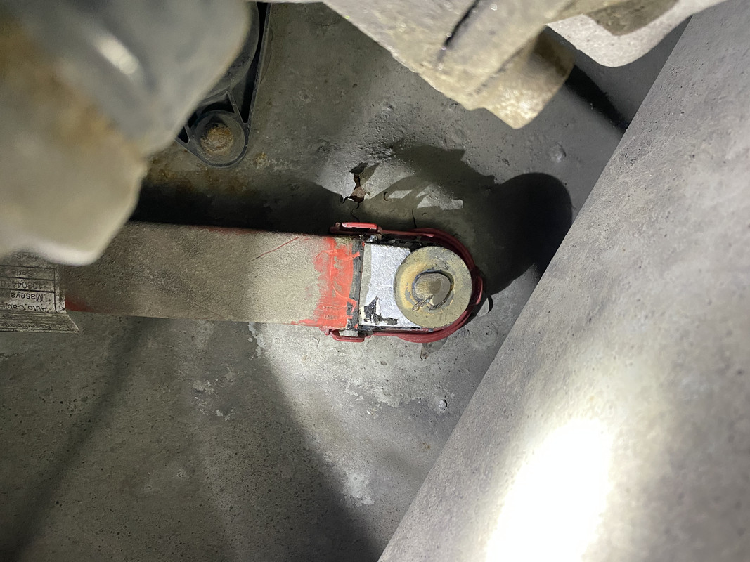 Hej så här såg det ut hos mig detta är under bilen. Länk så här löste jag problemet slipade ur det blåa i bild ovan. svetsade på brickan på den rostfria "bulten" Länk Länk hade kontakt elfett på grejerna sen fyllde locket med silikonliknade massa och sen på med tectyl. Länk |