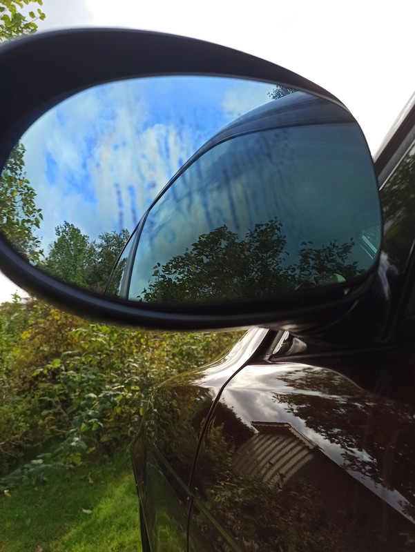 La märke till att det bildats någon blå hinna som man kan känna med fingret på ena spegel glaset. Provade med alkalisk avfettning och flygrostlösare och gick inte bort. Ser någon direkt vad detta är för typ av "skada". Kan inte minnas att det var så sist jag hade bilen. Brukar tvätta emellanåt med vanliga medel inget okänt märke eller så och aldrig i direkt solljus. Snarare tvärtom att jag gärna tvättar vid skymning. Ibland e jag dålig på torka efteråt men några snabba vändor på E6an i 150 så har allt vatten i princip försvunnit ihop med lite rutvärmare för fram och bakruta Skall ta mer skarp bild men såhär såg det ut förut idag :/ [img]Länk [img/] | |