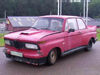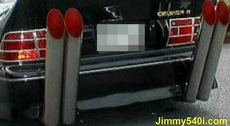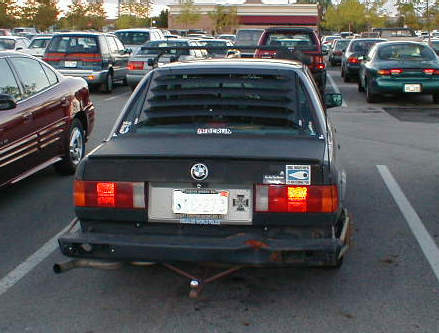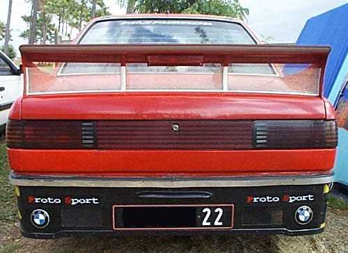Notera dubbla avgaspipor, uppånervända bakljus från nån