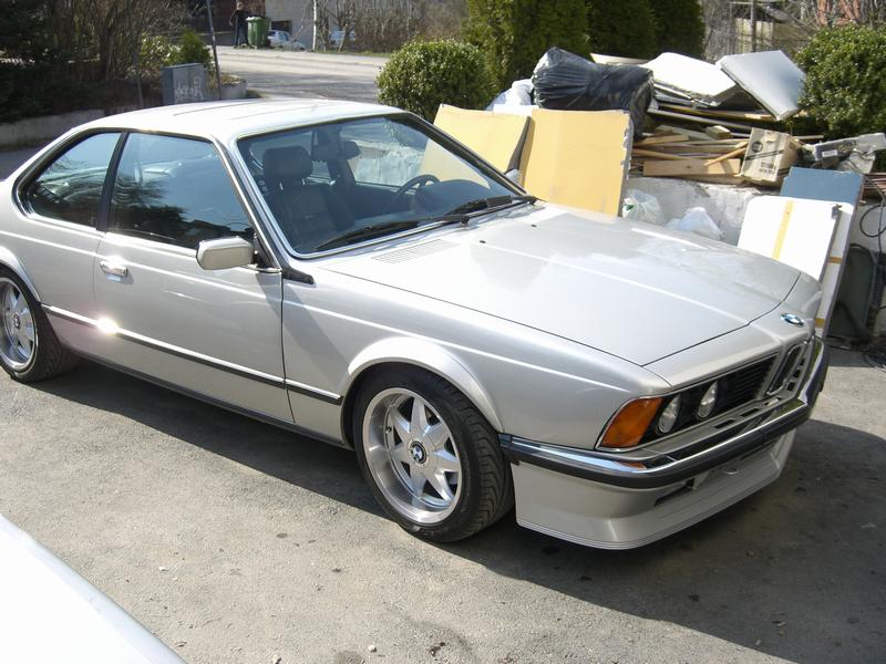 Parkerad framför bråten som blivit efter utslagning av garaget, så att det blir plats för nya objektet E9 3.0Csi:n