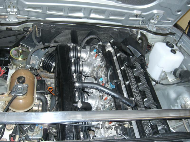 Motorrummet, med den nya spolarvätskebehållaren, och de nyrengjorda insugsrören samt nya gummibälgar.