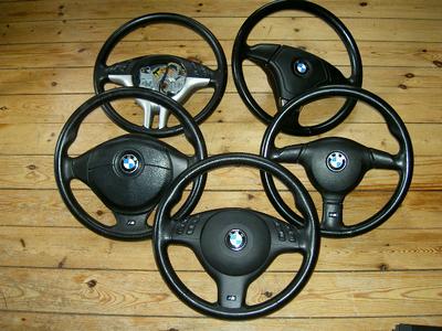 Justa rattar....smile längst fram E39 multiratt ratt från M5 E39 som jag modifierat om så den passar till Z3 o övriga E36 och E46 den klart snyggaste BMW ratten, vidare vanlig M-ratt för E36+Z3 inte är den vacker som en semmeltårta..., M-TechII ratt ej airbag med ombyggd elektronik så inte airbaglampan tänds passar alla E36 och E46 Z3 och kanske E30 snyggare en vanliga M-ratten!, högst upp E46 ratt ombyggd för passa i E36 samt Z3 (multiratt) en snyggratt kanske lite klen i diametern., högst upp till höger standardratten i Z3 upp till -04 99 och E36 sedan kom en variant av den uppe till vä. utan multifunktion. |