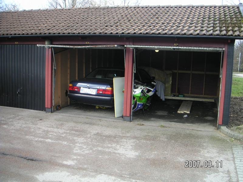 Här syns 750iL med ZXR400 till höger. 740iL är ute för tvätt. ZX-7R står till vänster om bilen men syns nog inte...
