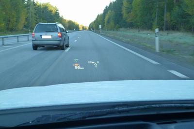 Fritt framåt medan bil kör om.