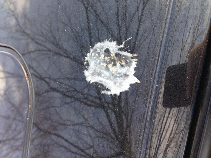 Sånt här får man spola bort varje dag så länge den står ute. Fåglarna verkar gilla mörka bilar.
