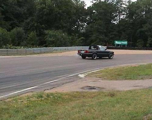 Bilen kändes mycket balanserad och lättkörd i konbanan, att bli 25:a av 50 i konbanan med en bil som blir 78:a av 87 på strippen är väl inte så illa? Chassit flexar som ett järnspett, de förstärkningar som gjorts i samband med pickupbygget är inte i vägen. Däcken som är lite hårda och skakiga vid landsvägskörning kommer mer till sin rätt vid hårdkörning. Och att bilen är osänkt (original sportfjädring) gör att man helt slipper den tendens till diffus självstyrning som förekommer på (tok-)sänkta bilar.