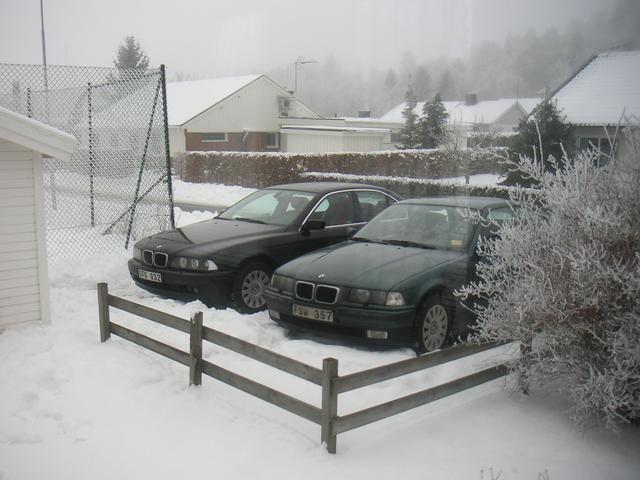 En vacker E36:a och E39:a, en ren njutning att veta att de står på ens garageuppfart. Annars så är majoriteten V70 i området.... Snart kommer E32:an och då blir garageuppfarten komplett